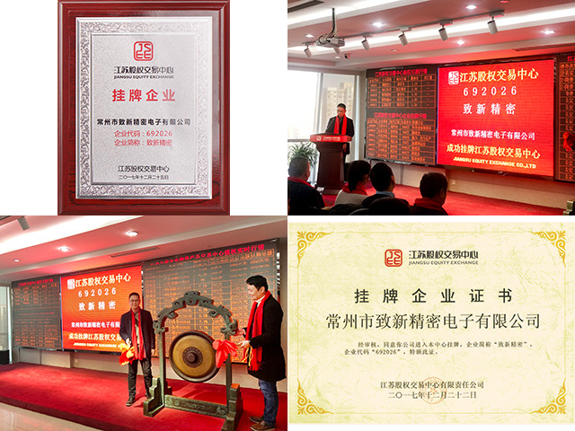 2018年1月11日下午,江蘇股權(quán)交易中心企業(yè)集中掛牌儀式隆重舉行。本次掛牌的共有38家企業(yè),其中常州市致新精密電子有限公司(以下簡稱“致新精密”)成功掛牌成長板。掛牌儀式的成功舉行,要感謝江蘇股權(quán)交易中心對我司各方面實(shí)力的審計(jì)與認(rèn)可。